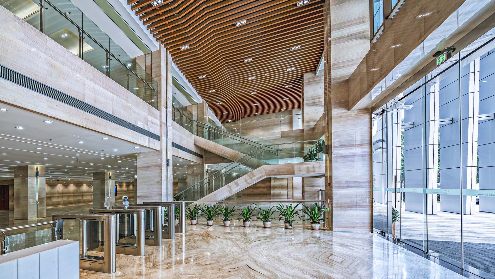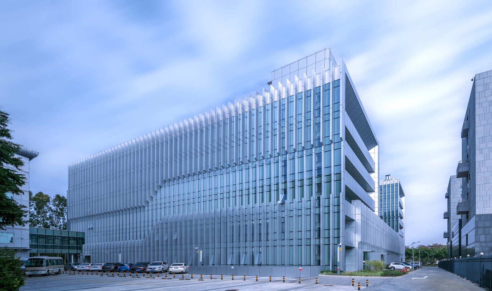 廣州白云國際機場是中國三大樞紐機場之一,為滿足持續(xù)、快速增長的航空業(yè)務(wù)量和未來信息化發(fā)展的需求,在機場工作區(qū)新建綜合信息樓,助力于加強機場整體把控,統(tǒng)籌運行資源,有效實現(xiàn)全區(qū)域、全流程一體化管理。從空中俯瞰機場,綜合信息樓順應(yīng)整體片區(qū)肌理,與周邊環(huán)境融為一體,消隱在一片井然有序之中。從市區(qū)前往航站樓,機場大道沿途建筑保持統(tǒng)一序列感,與林木交織掩映,綜合信息樓和而不同,協(xié)調(diào)又賦有特色。